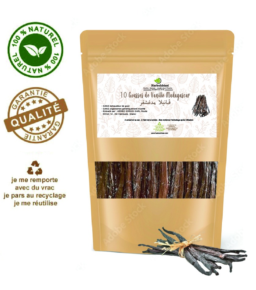 Nos 10 gousses premium, soigneusement sélectionnées à la main, sont riches en vanilline naturelle, souples et très parfumées.