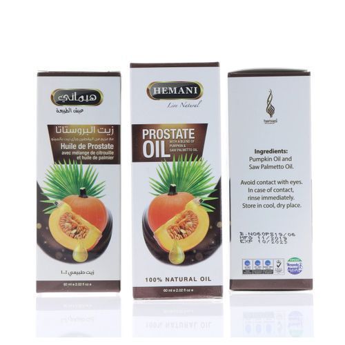 L’huile de prostate est un mélange unique d’huile de citrouille et d’huile de palmier nain qui aide à soulager les symptômes de l’HBP ( Hypertrophie Begnine de la Prostate) qui est une condition courante chez les hommes. Il s’agit d’une inflammation de la prostate, ou en d’autres termes, lorsque la prostate augmente de taille. Ses symptômes peuvent inclure une miction lente ou retardée qui peut causer des problèmes de vessie et de rein, ainsi qu’une infection des voies urinaires. L’huile de prostate Hemani est 100% naturelle et 100% à base de plantes, sans conservateurs ni produits chimiques.Avec un mélange d’huile de citrouille et de palmier nain huile de citrouille et d’huile de palmier nain DIRECTIONS1 cuillère à thé avec de l’eau chaude après le petit déjeuner et 1 cuillère à thé avec de l’eau chaude après le dîner.