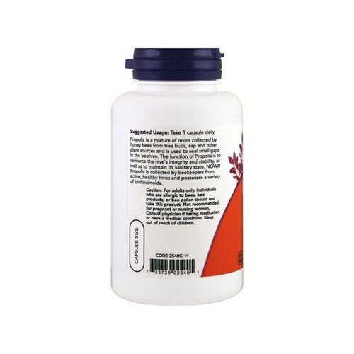 Produit naturellement par les abeillesExtrait 5:1Sans OGMComplément alimentaireSanté généraleEntreprise familiale depuis 1968Qualité assurée par le respect des BPFLa propolis est un mélange de résines collectées par les abeilles dans les bourgeons et la sève des arbres ainsi que dans d’autres sources végétales et qui est utilisée pour combler de petits espaces dans la ruche. La fonction de la propolis est de renforcer l’intégrité et la stabilité de la ruche tout en maintenant son état sanitaire. La propolis de NOW collectée par les apiculteurs dans des ruches en bonne santé et active est en riches de nombreux bioflavonoïdes.Usage suggéréPrendre 1 capsule par jourAutres ingrédientsCellulose (capsule), poudre de cellulose, acide stéarique (source végétale), stéarate de magnésium (source végétale) et siliceNon fabriqué avec des ingrédients de levure, de blé, de gluten, de soja, de lait, d’oeuf, de poisson, de crustacés ou de noix. Produit dans une installation GMP qui traite d’autres ingrédients contenant ces allergènes.AvertissementsMise en garde : pour adultes uniquement. Les personnes allergiques aux abeilles, aux produits issus des abeilles, au pollen d’abeilles, ne devraient pas prendre ce produit. Déconseillé aux femmes enceintes ou qui allaitent. Consultez un médecin si vous suivez un traitement médical ou si vous souffrez d’un problème de santé. Tenir hors de la portée des enfants.Une variation naturelle de la couleur de ce produit pourrait survenir.Conserver dans un endroit frais et sec après ouverture.
