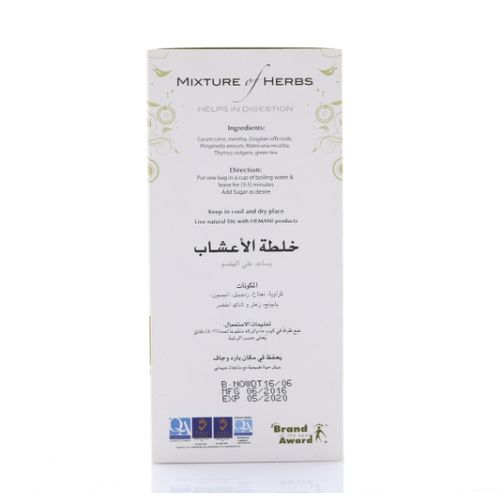 Une tisane naturelle faite à partir de la combinaison parfaite d’herbes, qui contient des propriétés digestives pour soulager l’indigestionIngredients : Caraway , menthe , gingembre , Anis , chamomille , Thym , Thé VertPack de 20 Sachets