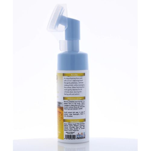 Un nettoyant moussant unique pour le visage avec une brosse nettoyante 3 en 1 qui exfolie en douceur, enlève le maquillage et la saleté tout en massant pour dégonfler et améliorer la circulation. Le curcuma a des propriétés antioxydantes et anti-inflammatoires et est un nettoyant naturel. Il nettoie la peau et élimine les impuretés, laissant votre peau propre, pure et lisse.Masser doucement sur le visage humide avec une brosse en mouvements circulaire.